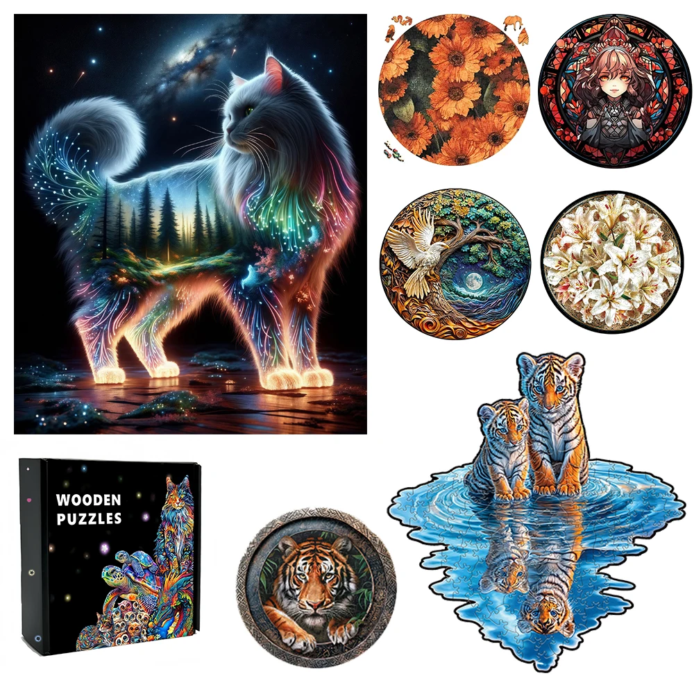 Experience the perfect blend of elegance and wild beauty with this Cat Tiger Wooden Jigsaw Puzzle for Adults. Designed with a unique fusion of a gentle cat and a powerful tiger, this puzzle symbolizes both calm and strength.