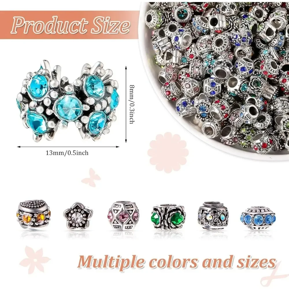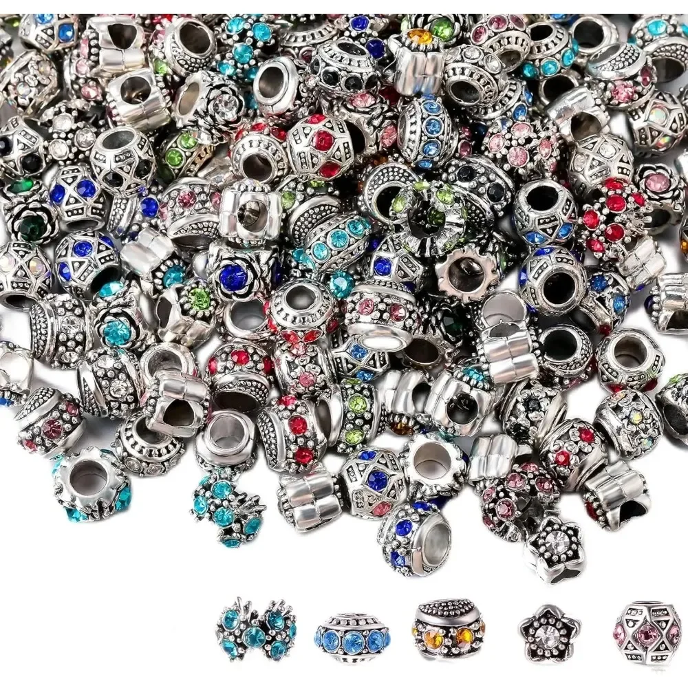 These crystal rhinestone charm beads are perfect for elevating your DIY jewelry creations. Designed with sparkling rhinestones, they add a brilliant shine to any piece. Crafted from sturdy alloy metal, they ensure durability and long-lasting wear. The European-style design fits most charm bracelets, bangles, and necklaces. Available in 10 or 20 piece sets, they provide flexibility for different projects. Their assorted designs bring variety and creativity to your jewelry making. Ideal for boho, chic, or classic styles, they suit many fashion preferences. The smooth inner core allows easy threading onto chains and cords. Perfect for creating personalized bracelets, necklaces, and gifts. A must-have accessory for jewelry makers, crafters, and creative hobbyists.